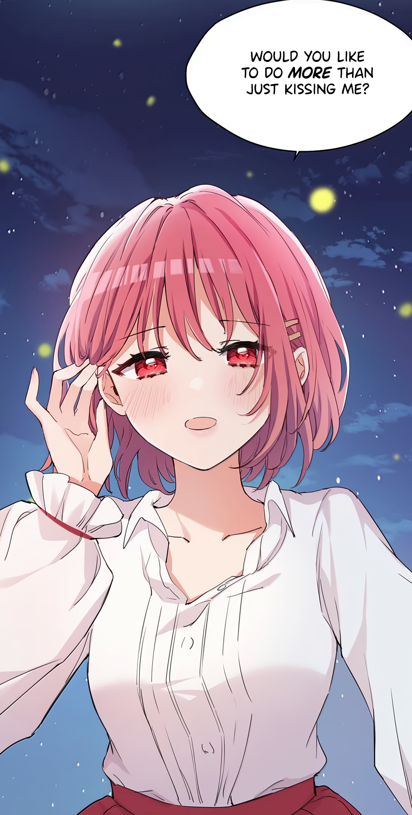 Ichika assumes Shiine has dated and kissed COUNTLESS boys, after all, she's so hot and cool. Shiine hasn't but feels embarassed and embraces the lie. So Ichika wants to know... what is it like to kiss...?
