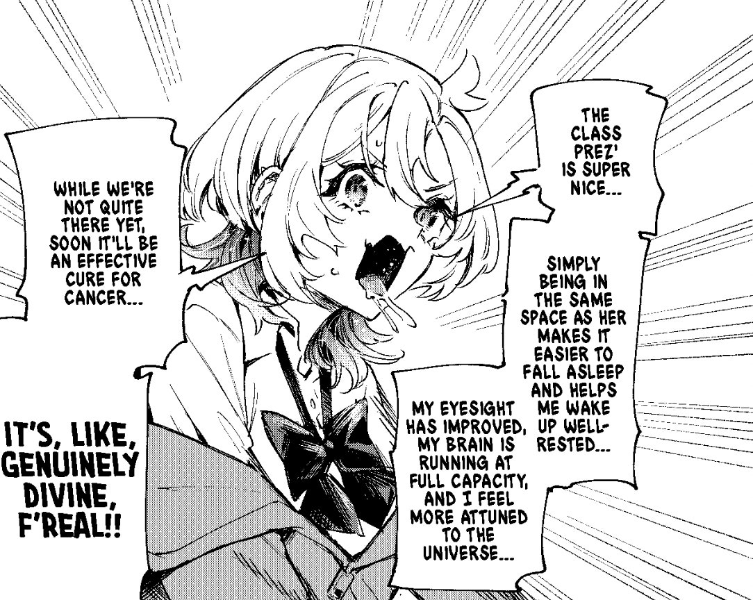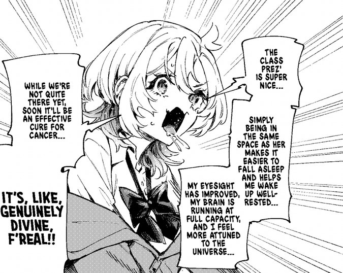 Read this manga if you like: EXTREME LEVELS OF FLUFF. OVERLOAD. OVERLOAD. Girls making out with girls. Idiot couple, like holy shit REALLY BIG IDIOT COUPLE ENERGY. "THIS GIRL KEEPS ASKING ME TO MAKE OUT WITH HER EVERY DAY AFTER SCHOOL I WONDER IF SHE LIKES ME LIKE I LIKE HER"
