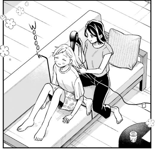 One more for now! This one is... exactly what it sounds like on the tin. Rika is a shy but sweet college student who is invited to a mixer. The men there are kinda handsy, and she's saved by an older woman, Natsuko, who... slyly takes her out to a cafe and back home instead.