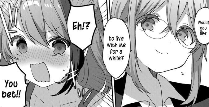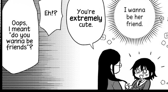 Read this if you like: Essentially yandere, without any of the actual violence or death or anything. Sakurako is BASICALLY yandere levels of in lvoe with Tadokoro. So, read this if you like seeing really horny girls be VERY horny for other girls, because that's like 70% of this manga. Also lots of height gap and gap-moe.